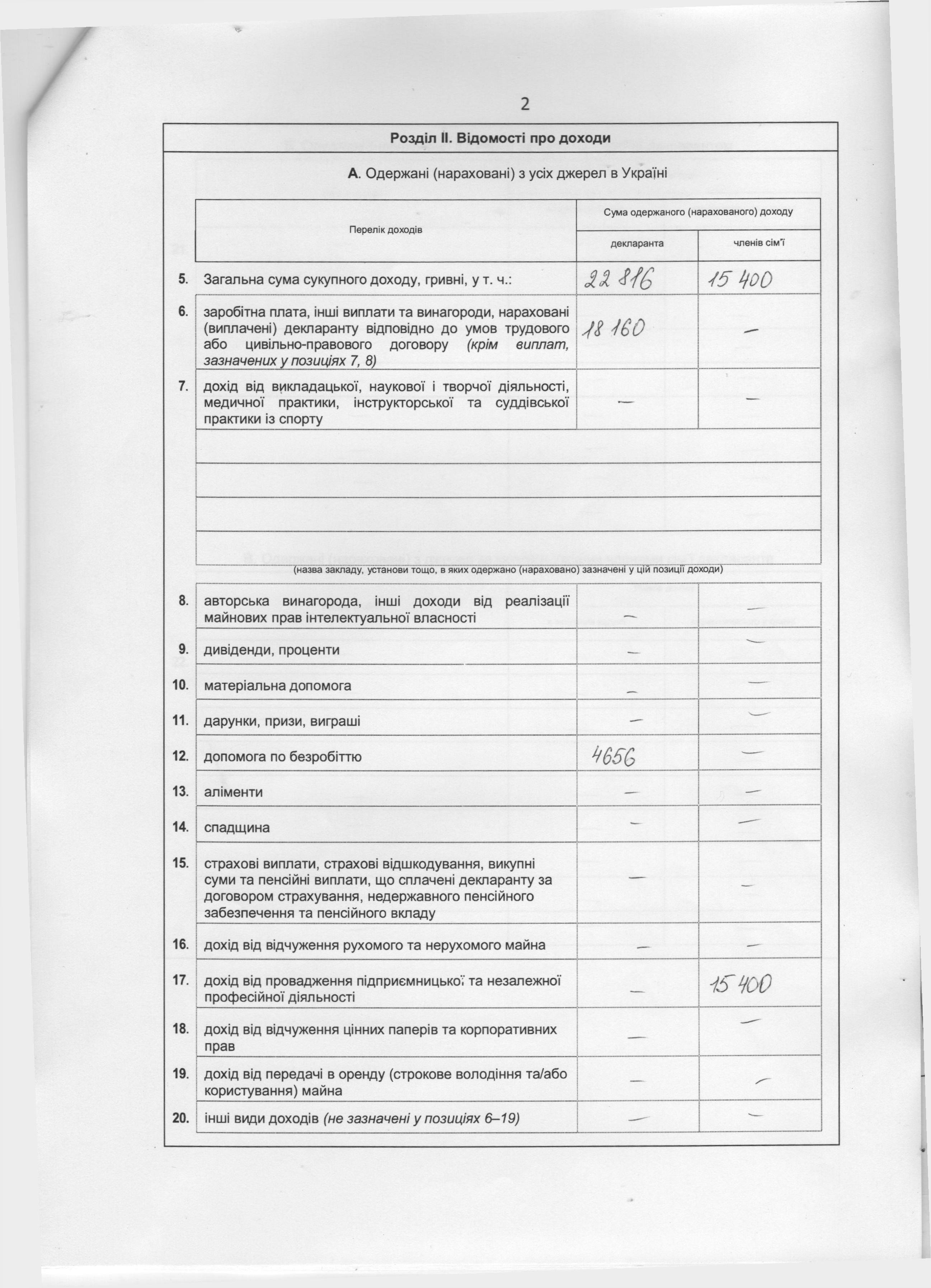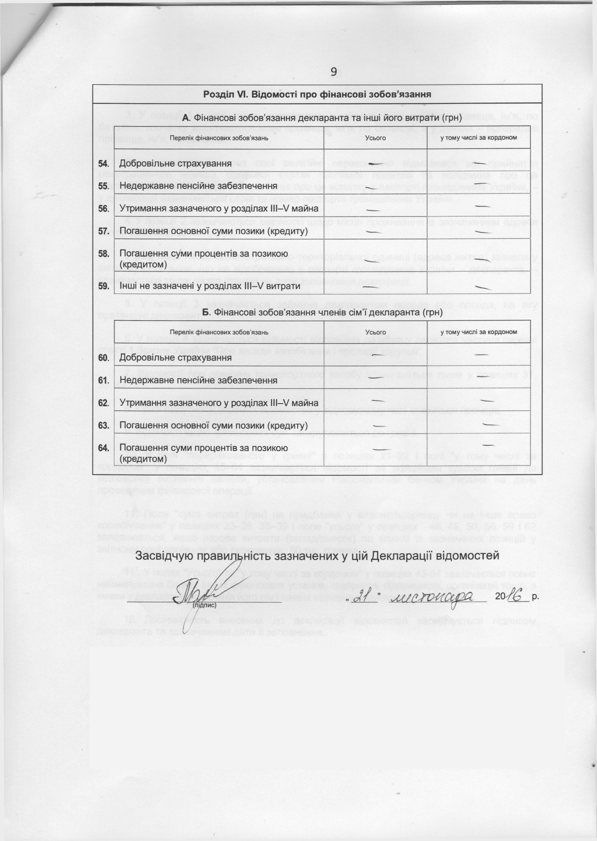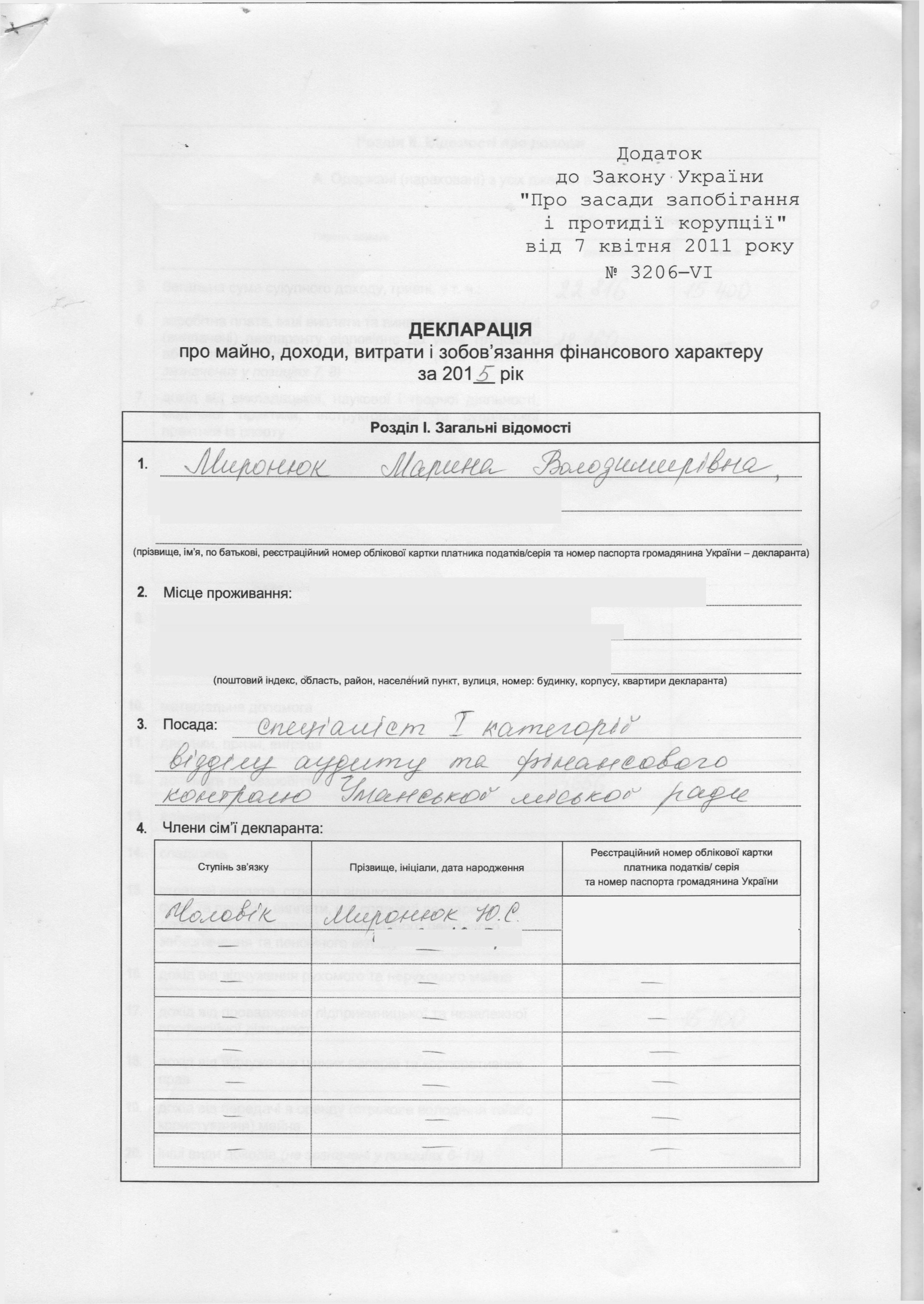 Копії заяви про проведення перевірки та декларації про майно, доходи, витрати і зобов’язання фінансового характеру за 2015 рік додаються.